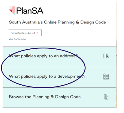For the purposes of preparing submissions, the third option, ‘Browse the Planning & Design Code’ is, in our view, the most helpful.